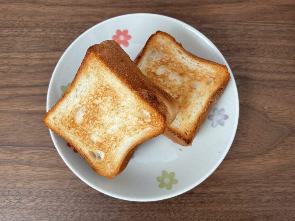 今回はトーストして食べてみました。 ふわふわでほんのり甘く、これが卵・乳不使用で市販で手に入るとは驚きです。 生地はデニッシュに近い食感です。 乳不使用のバターにも合いますし、ハムなどのしょっぱい系にも合いました。