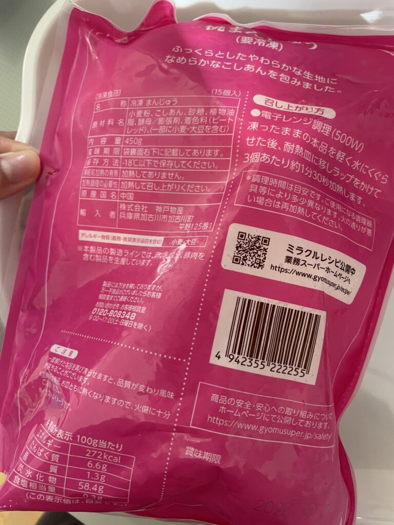 業務スーパーの「ももまん」は、見た目も華やかで、子どもが「これ食べたい〜!」と手を伸ばしたくなる可愛さです。