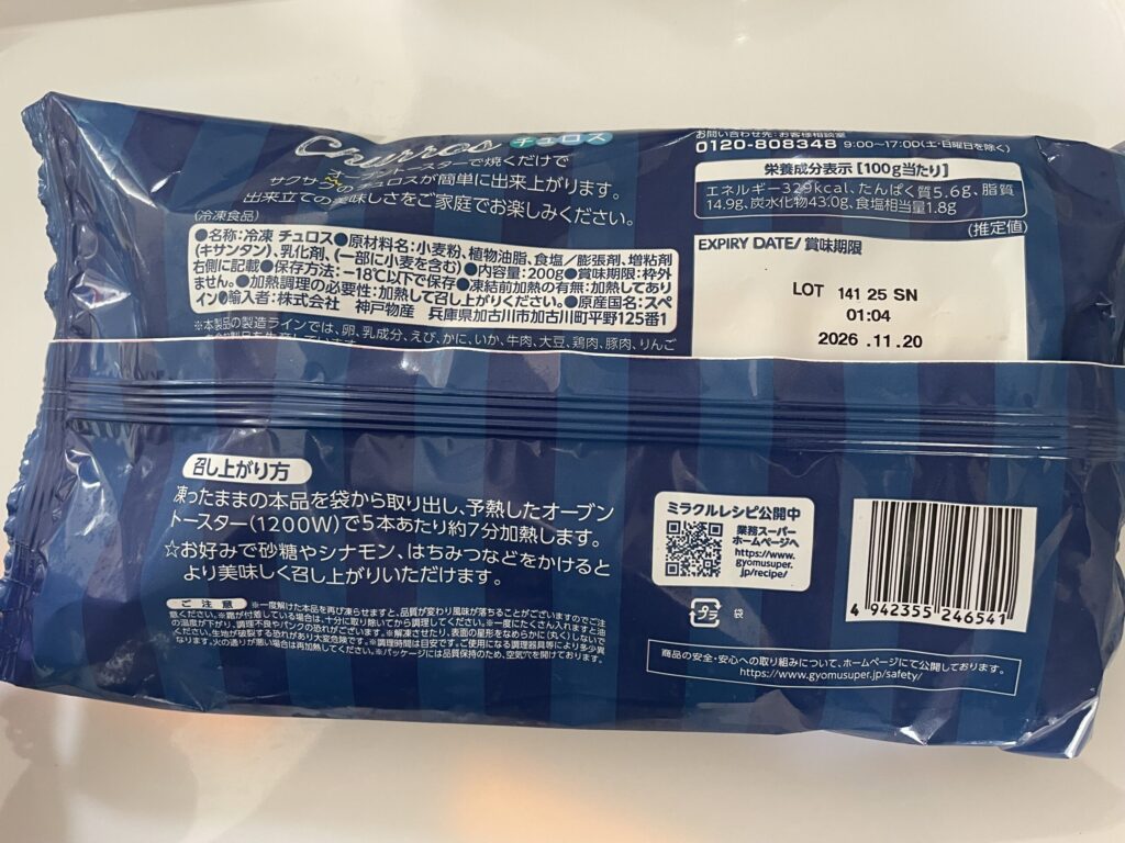 業務スーパーの「チュロス」も卵・乳不使用!