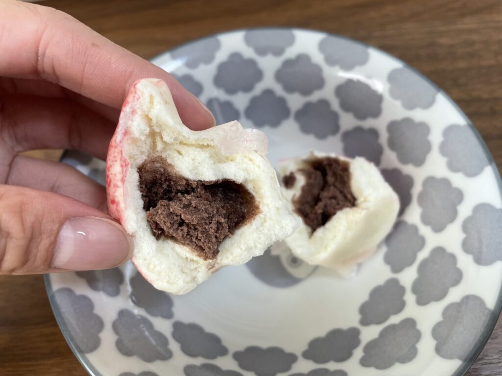 大きさは小ぶりです。小さいですが、レンジで温めるとふわふわになります。温めすぎると、中のあんこがパサパサになるので気をつけてください。