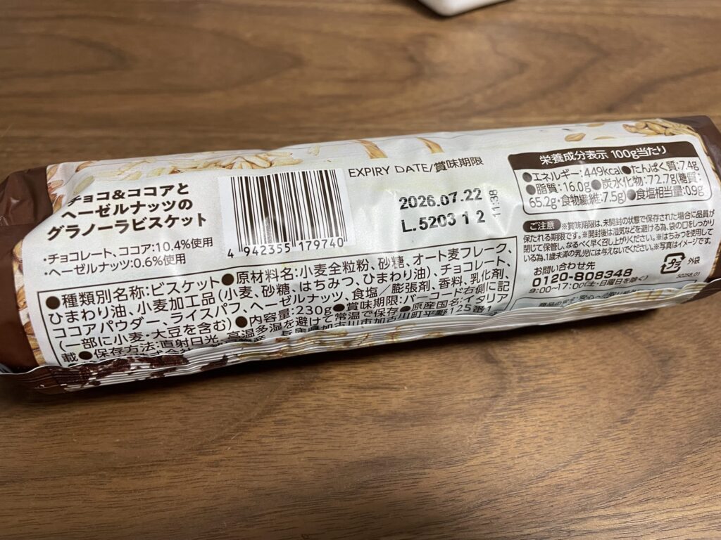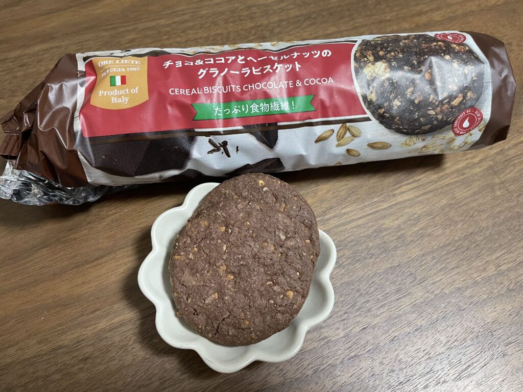 そんな中、業務スーパーで見つけたのが「チョコ&ココアとヘーゼルナッツのグラノーラビスケット」です。