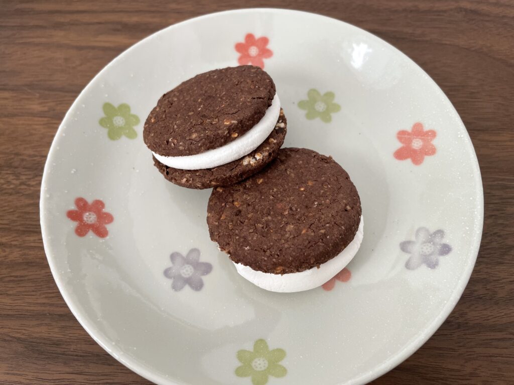 ビスケットだけでも美味しいのですが、さらにおすすめしたいのが 「マシュマロサンド」です。