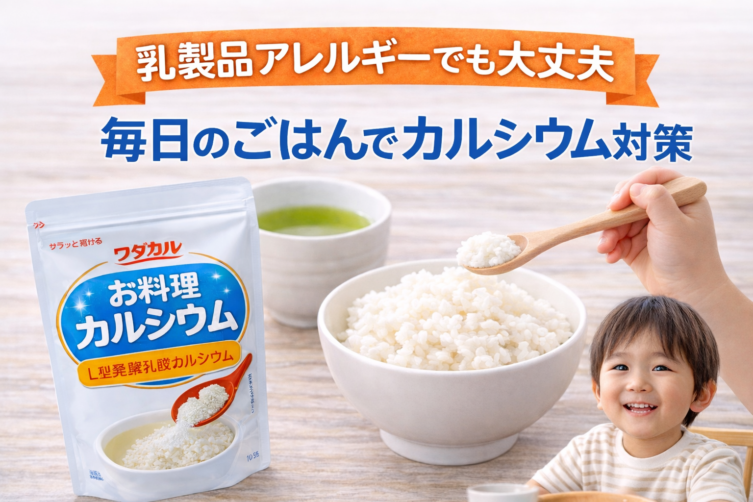 ワダカルお料理カルシウムは、乳製品アレルギー家庭にとって心強い味方の一つだと感じました。