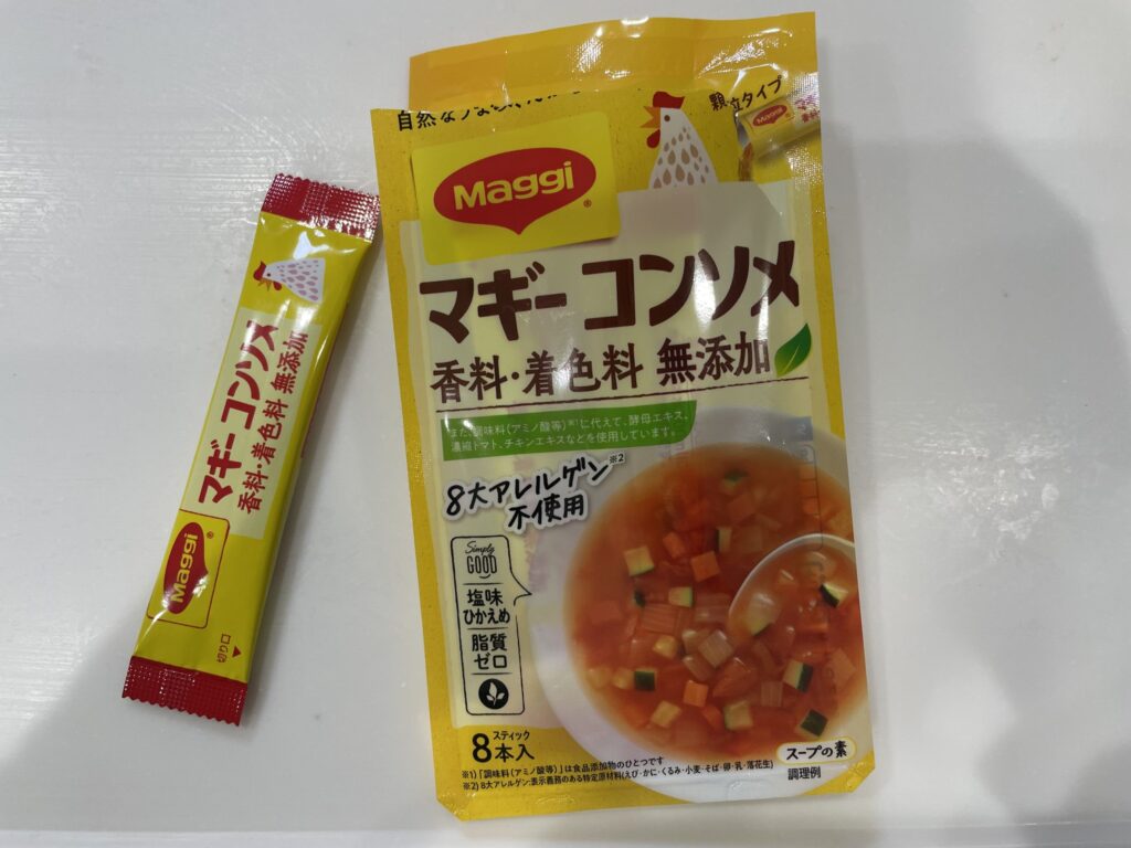 今、我が家で使っているのは、マギー コンソメ(8大アレルゲン不使用)です。